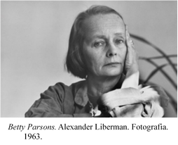 Betty Parsons Gallery abrió sus puertas en septiembre de 1946 y en 1948 ya estaba presentando obras de Newmann, Rothko, Pollock y Still; por lo que es una de las galerías de arte más prestigiosas de New York. Luego, se dedicó a promover artistas nacientes que tuvieran un “Nuevo Espíritu”, tales como Rauschenberg, Alfonso Ossario y Forrest Bess. Su meta era brindarles un espacio a artistas no tan reconocidos, en especial a mujeres y personas de la comunidad LGBTQ+. Críticos del arte reconocieron que Parsons tenía un interés genuino por los nuevos y jóvenes artistas; y por el arte por ser eso mismo, arte, no un objeto simplemente comerciable.